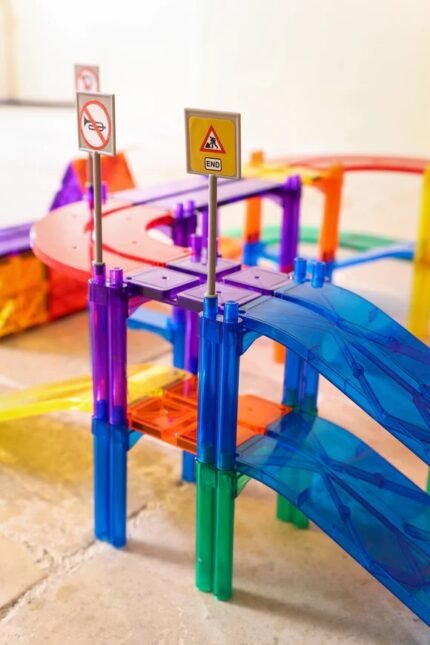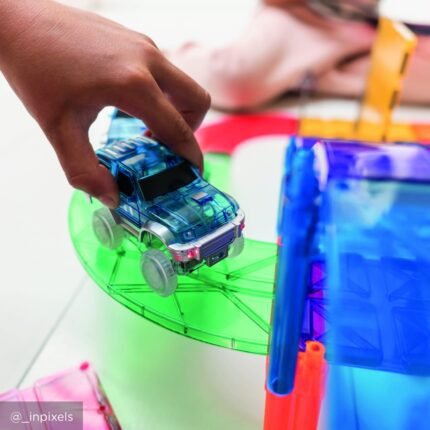 Circuit magnetic pastel – Cleverclixx | Construcții creative cu 80 de piese luminoase Transformă podeaua în pistă de curse cu