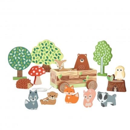 Jucarie de indemanare Set cu piese din lemn animale de padure, Orange Tree Toys