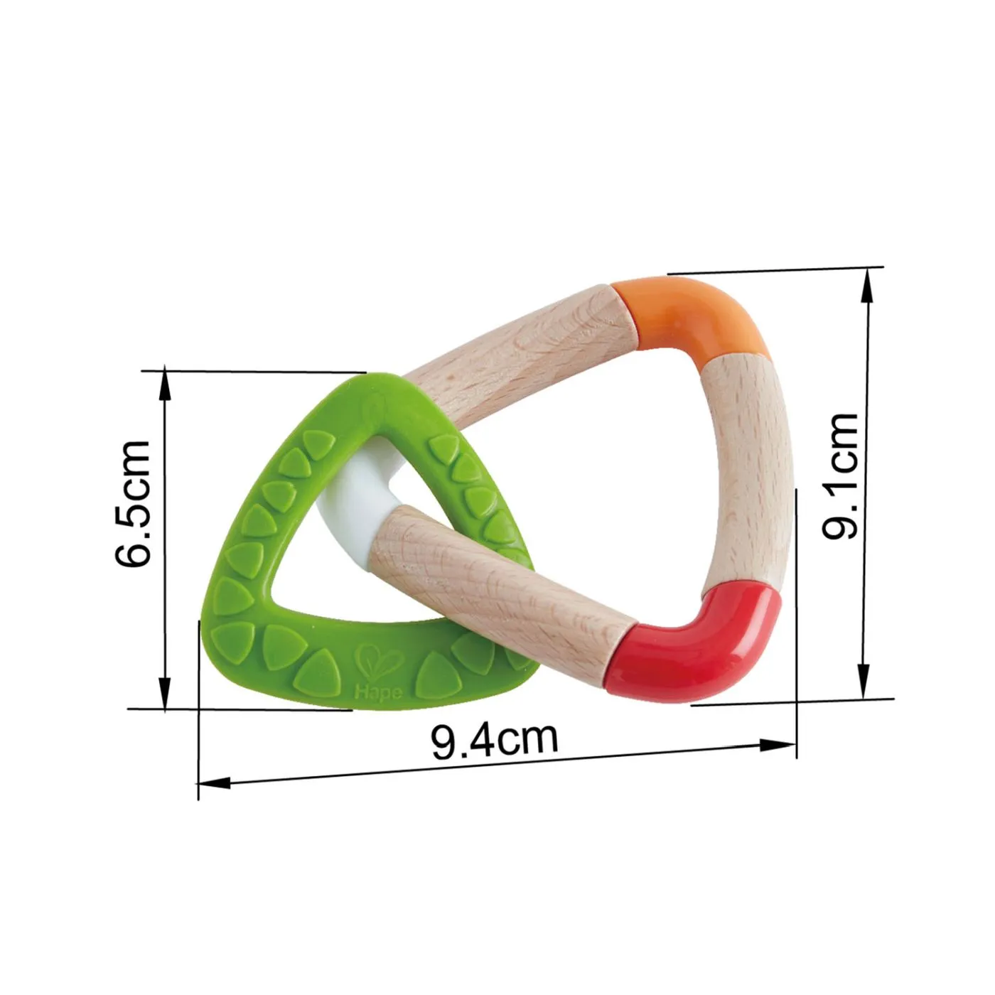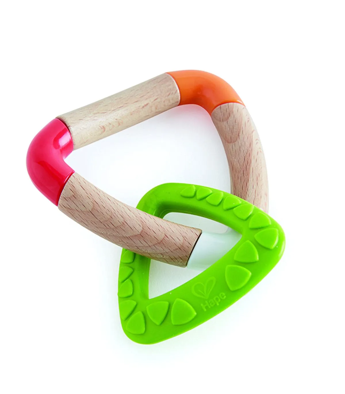Acesta jucarie pentru dentitie ofera ameliorare bebelusului atunci cand dintii lor mici incep sa apara. Manerul din lemn este placut la atingere si sigur de mestecat, iar triunghiul pentru dinti este fabricat din silicon fara BPA. Le vor placea culorile stralucitoare si formele interesante. Cele doua componente triunghiulare colorate se rotesc una in jurul celeilalte, creand oportunitati de joc. Segmentele de lemn de pe triunghiul mai mare se invart, de asemenea, ajutand la dezvoltarea abilitatilor motorii fine. Usor de prins de bebelusi si usor de transportat si depozitat de catre adulti Jucariile sunt realizate din lemn, folosind materiale ecologice, vopsite in culori atragatoare cu vopsele nontoxice, care depasesc cele mai inalte si stricte standarde internationale de siguranta si calitate, precum EN71, ISO9001, ASTM F963 si altele. De multi ani, Hape a creat jucarii fantastice, de inalta calitate, folosind materiale ecologice si durabile, fiecare produs fiind atent proiectat pentru a stimula abilitatile senzoriale, fizice si emotionale.