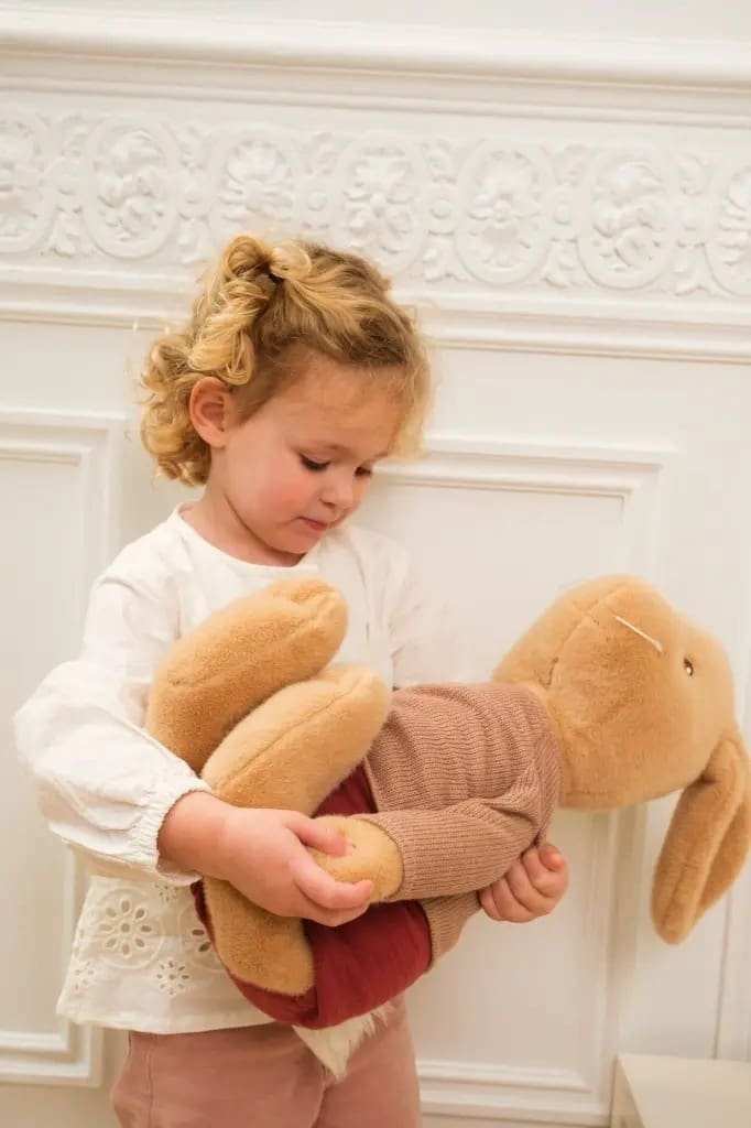Iepurasul Lenny Lenny este un iepuraș de pluș de dimensiune mare, conceput pentru îmbrățișări nesfârșite și momente de liniște. Cu o expresie blândă și urechi moi, Lenny își invită prietenii la joacă calmă și povești liniștite înainte de somn. Beneficii: Lenny devine un prieten bun pentru rutina de seară și oferă copilului o sursă de liniște emoțională. Acest iepuraș de pluș poate fi protagonistul poveștilor inventate, contribuind la dezvoltarea creativității. Dimensiunea mare îl face ușor de ținut în brațe, dar și potrivit pentru jocuri interactive. Ideal chiar și pentru decorul camerei copilului sau ca jucărie preferată. Materialul delicat încurajează jocul senzorial și îmbrățișările plăcute. Dimensiune 60 cm. Lavabilă în mașina de spălat la 30 oC.Vârsta recomandată: +3 luni. Confecționat din poliester. Conform reglementărilor EN71 & ASTM. AVERTISMENT! A se folosi sub directa supraveghere a unei persoane adulte. Producător: Egmont Toys, Belgia.