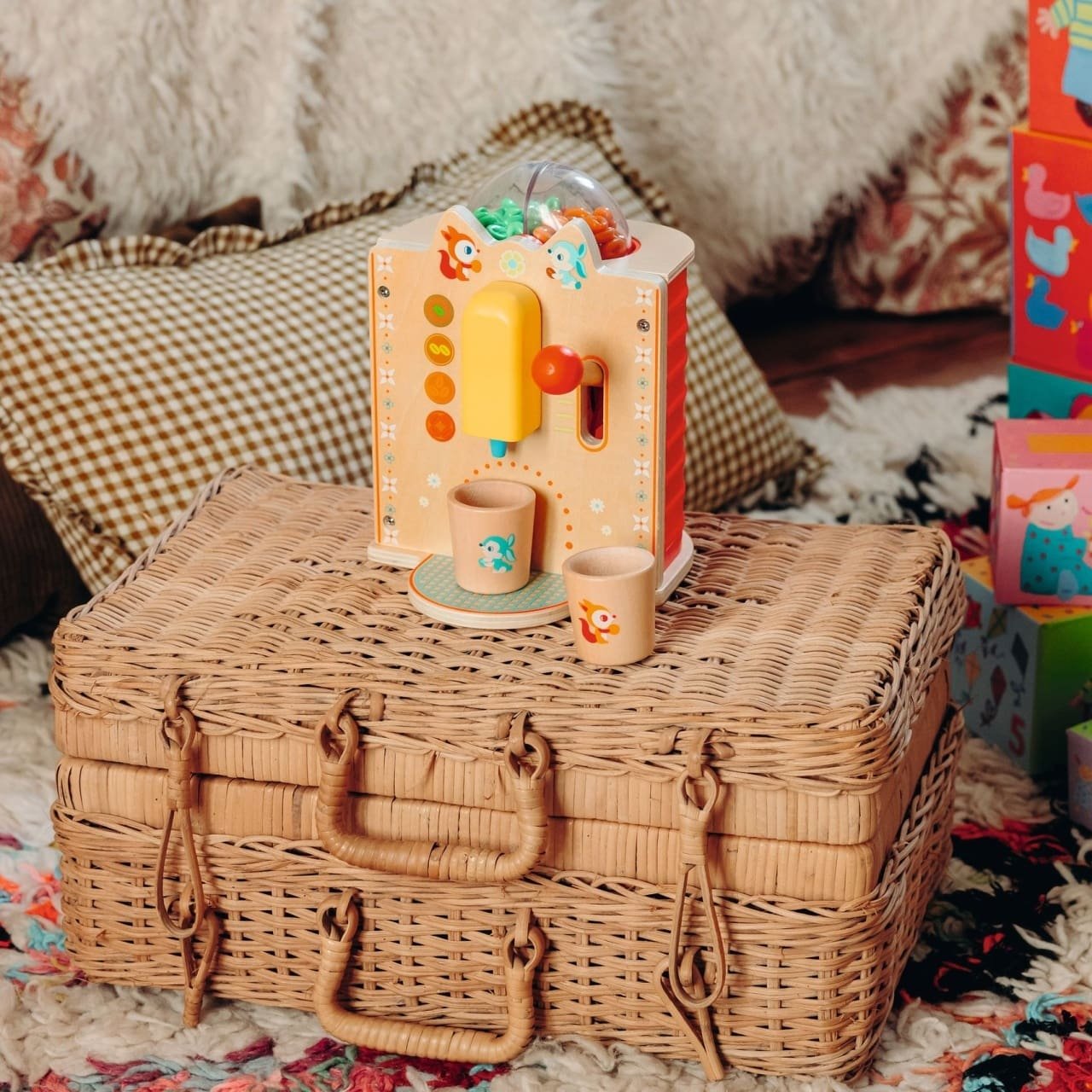 Espressor din lemn pentru copii Un espresso aromat sau un americano delicios? Cu aceast aparat din lemn de preparat de cafea, copiii pot intra cu ușurință în rolul de barista și se pot bucura de jocuri pline de imaginație, în timp ce pregătesc și servesc „cafele” delicioase pentru părinți sau prieteni. Cei mici aleg boabele de cafea, trag de manetă și se bucură de sunete realiste, asemănătoare unei cafele proaspăt măcinate. Ce conține: aparat de preparat cafea 2 căni pentru servire Beneficiile jocului: Stimulează imaginația și creativitatea Dezvoltă motricitatea fină și coordonarea mână–ochi Încurajează socializarea Ajută la înțelegerea activităților zilnice ale adulților Oferă joacă activă, fără ecrane Dimensiuni produs: 18 x 14 x 14 cm Varsta recomandata: +3 ani Material: Lemn certificat FSC®AVERTISMENT: Contraindicat copiilor sub 3 ani, conține piese mici. Se recomandă supravegherea copilului de către un adult în timpul jocului. Citiți instrucțiunile înainte de utilizare, urmați-le și păstrați-le pentru referință. Producător: Djeco, Franța.