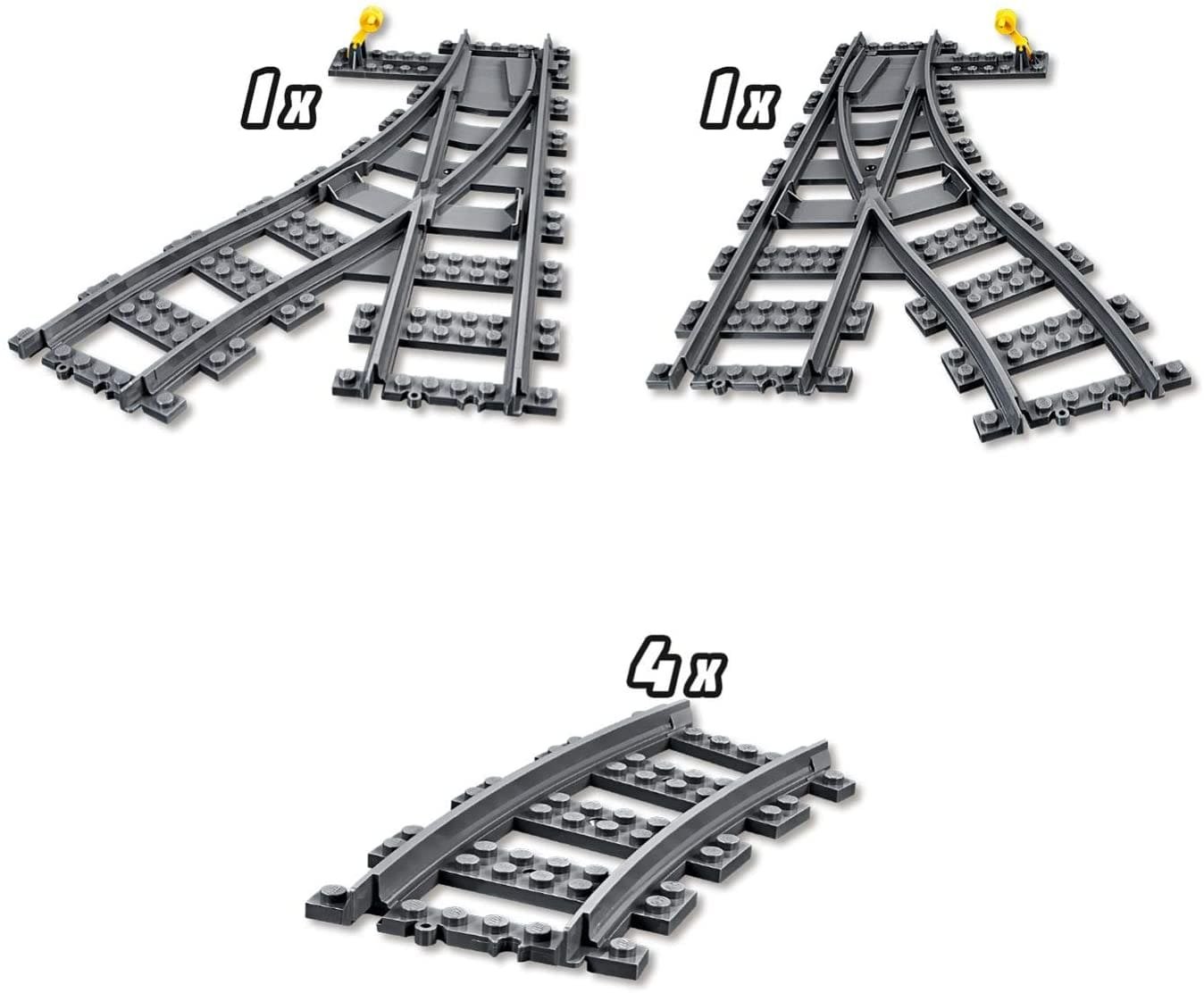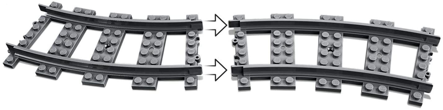 Construieste-ti sinele pentru trenul marfar cu ajutorul setului de macazuri (60238 Switch Tracks), pentru a face transportul marfar sau de pasageri si mai palpitant. Acest set, compus din patru sine curbe, un macaz cu directie spre dreapta si un macaz cu directie spre stanga, este compatibil cu seturile tale de trenuri existente. – Contine patru sine curbe, un macaz cu directie spre dreapta si un macaz cu directie spre stanga. – Conecteaza sinele la seturile tale existente, care includ 60198 Tren marfar, pentru a avea parte de si mai multa joaca si distractie.