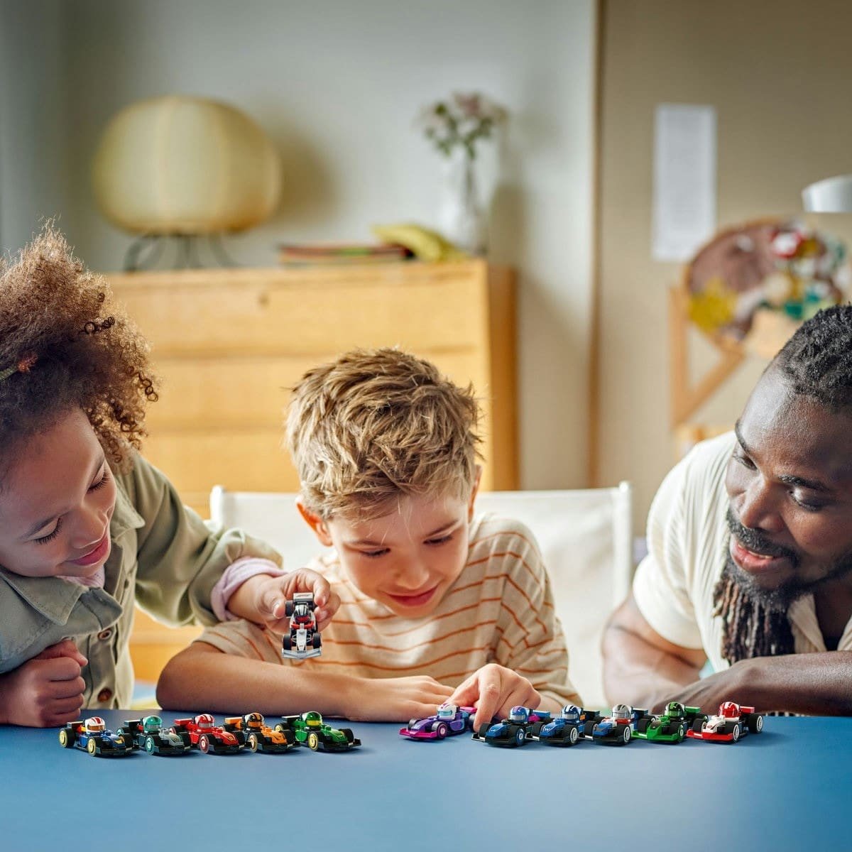 Intra pe pista de curse si traieste emotiile din Formula 1 cu aceasta gama de cutii misterioase LEGO Masini de curse F1 de colectie (71049) pentru copii. Un cadou atractiv pentru baieti si fete de 6 ani si mai mari, aceste cutii cu vehicule inspira povesti grozave si multe ore de joaca independenta sau cu prietenii. Fiecare set auto contine 1 model surpriza de Masina de curse LEGO F1 de colectie, in total existand 12 piese de colectionat o masina F1, o masina F1 ACADEMY si 10 masini reprezentand echipe de Formula 1 RB20, Mercedes-AMG, Ferrari, McLaren, Aston Martin, Alpine, Williams, VCARB, Sauber si Haas. Fiecare model de masina include culorile unei echipe F1, logourile acelei echipe, o casca mare in cockpit si roti mobile, astfel incat fanii F1 sa imagineze curse interesante. Copiii si colectionarii de modele auto pot construi si etala aceste vehicule de jucarie unice si uimitoare si pot interpreta cu ele scenarii de joaca dinamica.