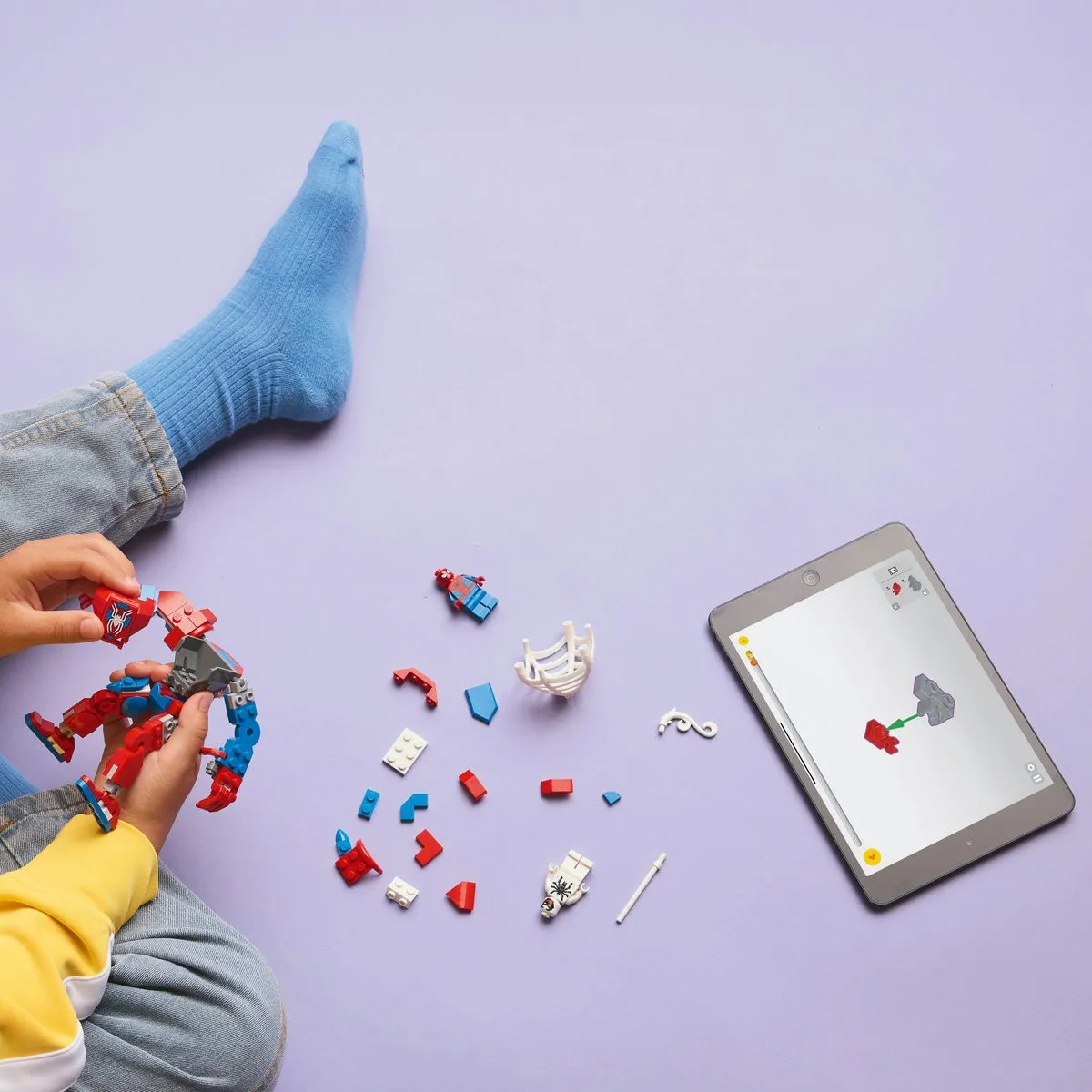 Robotul Omul Paianjen vs. Anti-Venom (76308) este o jucarie LEGO® construibila cu supereroi, ideala pentru copiii care adora robotii, minifigurinele si actiunea din filmele Marvel. Acest set LEGO Marvel de calitate superioara va plasa nenumarate aventuri fanteziste cu o figurina Omul Paianjen complet articulata si construibila in mainile micilor supereroi de 6 ani si mai mari. Acest set LEGO Marvel include 2 minifigurine Omul Paianjen si Anti-Venom cu mainile sale tentaculare. Robotul construibil are brate, picioare si degete mobile. Copiii deschid trunchiul robotului pentru a avea acces la cockpitul in care poate fi amplasata minifigurina Omul Paianjen. Setul include o panza mare si flexibila care poate cuprinde minifigurina Anti-Venom si incape atat in mainile minifigurinei, cat si in cele ale robotului. Pentru mai multa distractie digitala, constructorii pot apropia si roti modelele in 3D si isi pot urmari progresul folosind aplicatia distractiva si intuitiva LEGO Builder.