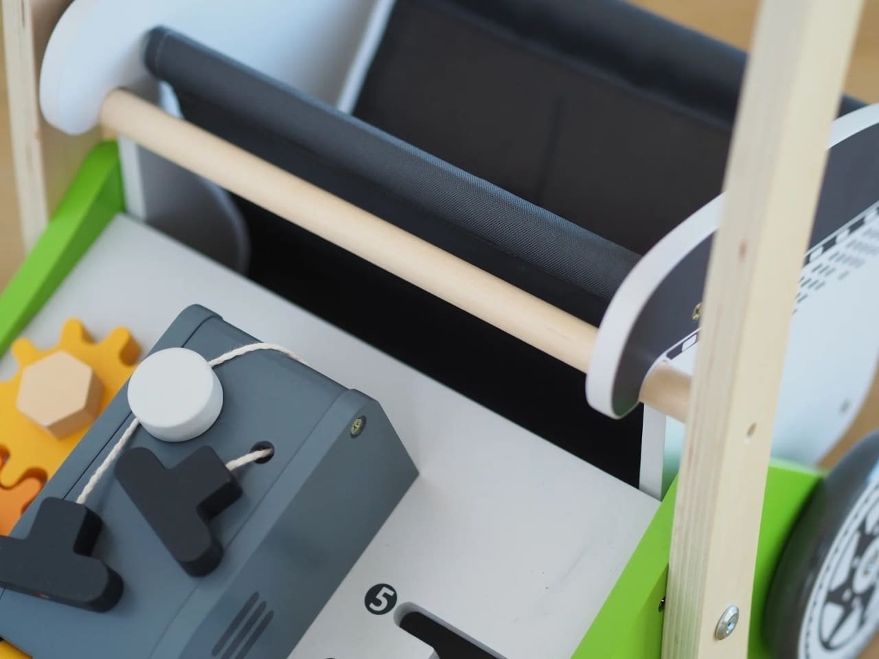 Premergator Masina de tuns iarba Premergătorul din lemn pentru bebeluși, în formă de mașină de tuns iarba, oferă nu doar un suport stabil pentru primii pași, ci și o mulțime de elemente interactive care dezvoltă abilitățile motorii, gândirea logică și imaginația copilului. Pe măsură ce micuțul explorează fiecare activitate, va dezvolta abilități esențiale și va descoperi bucuria rezolvării jocurilor. Roțile prevăzute cu bandă de cauciuc ale premergatorului sunt concepute pentru a proteja podelele de zgârieturi și a oferi stabilitate. Are margini netede și durabilitate ridicată. Dimensiuni premergător asamblat: 52 x 32 x 43 cm. Cadou pentru botez, zi de naștere, Crăciun. Vârsta recomandată: +18 luni sub supravegherea unui adult. Confecționat din lemn cu vopsele ecologice pe bază de apă. Conform EN71&ASTM cu certificare CE.AVERTISMENT: Contraindicat copiilor sub 12 luni! Se recomandă supravegherea copilului de către un adult în timpul jocului.Produs în China pentru UMU Toys, Cehia.